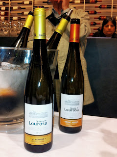 Relativamente aos vinhos verdes, pudemos provar um de lote com Loureiro e Arinto, de entrada de gama. Para mim foi a revelação da prova, pois não o conhecia e encontrei um vinho com grande frescura, de aroma citrino exuberante, leve e fácil de beber mas muito agradável na prova de boca. Por menos de 5 €, temos aqui uma excelente relação qualidade/preço, que pretende concorrer com os campeões de vendas deste segmento.