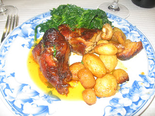 Terminada a função com o peixe, passámos então à carne, que cumpriu o que se esperava. Uns excelentes bocados de cabrito com batatinhas assadas e grelos cozidos, que marcharam até ao fim, embora nesta fase o apetite já fosse desaparecendo, mas perante tão deliciosos pitéus é difícil resistir.