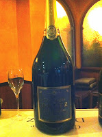 Só quando toda a gente estava à mesa e foram feitas as apresentações do que se iria passar fiquei a saber que o evento era promovido pela distribuidora Mister Wine e que em vez de um produtor de champanhe iríamos ter na sala os representantes de não 1, não 2, não 3, mas 4 produtores franceses: Deutz (da região de Champagne), Delas Frères (Côtes-du-Rhone), Michel Laroche (Chablis) e Pascal Jolivet (Loire). Conversa puxa conversa, um contacto leva a outro, um é convidado para apresentar os seus vinhos e há outro que entra na conversa, e assim em vez de apenas champanhe iríamos ter também vinho branco, tinto e doce. Um verdadeiro desfile de néctares de excepção à nossa espera! E só à medida que fui identificando os presentes, quase todos ligados ao sector do vinho (jornalistas e/ou enólogos e /ou produtores, representantes da Revista de Vinhos, jornal “I”, Exame) é que me apercebi de como era um privilegiado por estar ali, eu, um mero amador que escreve num blog e de vez em quando vai conhecendo as pessoas do meio numas provas aqui e ali...