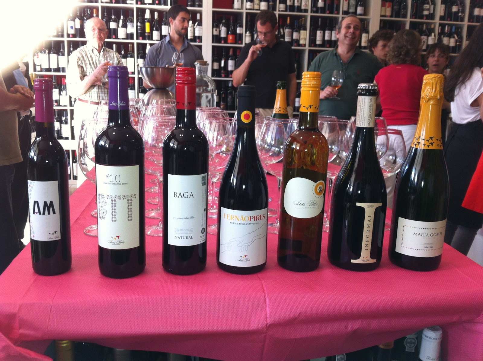 De Luís Pato espera-se sempre algo de original, irreverente fora dos cânones. Mais uma vez não defraudou essas expectativas. Mostrou aos presentes um espumante bruto feito apenas com Maria Gomes, um tinto Informal, mais leve e despretensioso, um branco igualmente de Maria Gomes, e depois a grande surpresa, um tinto... de uvas brancas, chamado Fernão Pires! Explica-se: o nome é em honra do neto, aproveitando o nome equivalente para a casta que tem o nome Maria Gomes na Bairrada. 94% do vinho foi feito com uvas de Fernão Pires/Maria Gomes e 6% fermentou apenas com as películas da Baga. Daqui saiu um vinho que, sendo na origem branco, obteve a cor tinta de uma pequena quantidade de películas de uva tinta... confuso, não é? Estamos a prová-lo e não percebemos bem se estamos a beber um branco ou um tinto... Bem, a verdade é que no rótulo consta como tinto, pois é essa a cor dele.